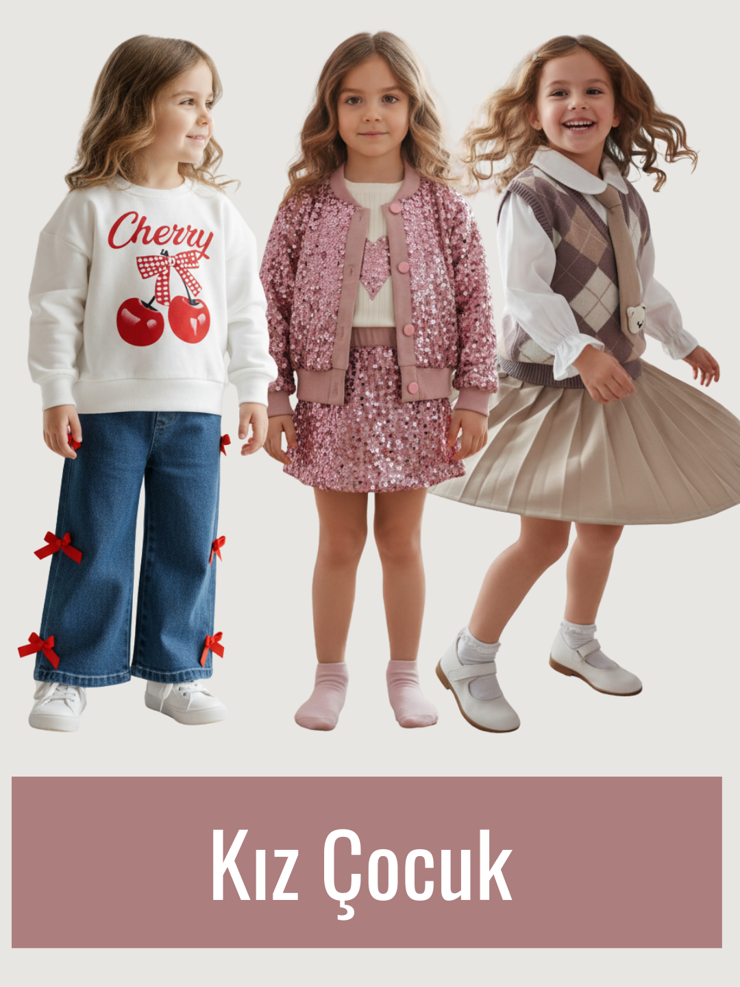 Kız Çocuk Triko Yelekli Şık 3'lü Takım